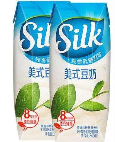 蒙牛和達(dá)能合作的植樸磨坊品牌推出Silk美式豆奶。以VTIS 8秒鎖鮮技術(shù)為賣點(diǎn),目前在售的有3種口味。